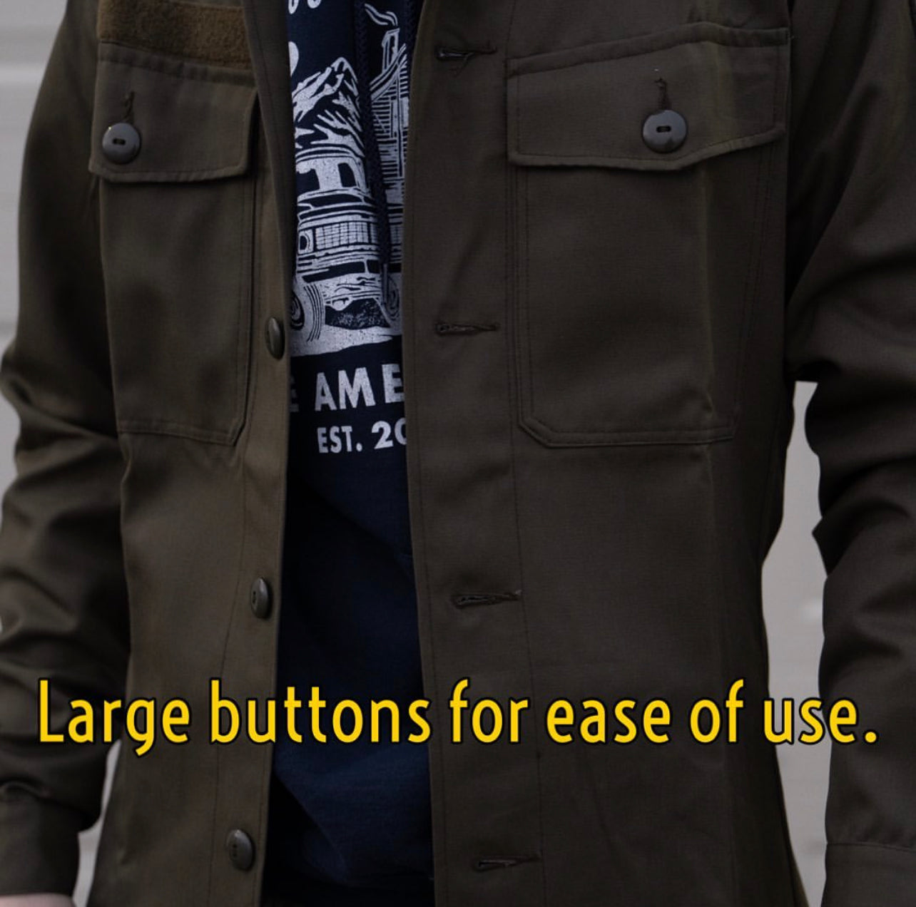 - Button flap chest pockets